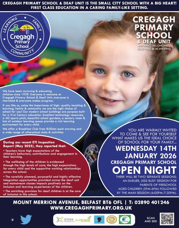 Cregagh Primary School, Mount Merrion Avenue, Belfast BT6 OFL | Phone: 028 9040 1246